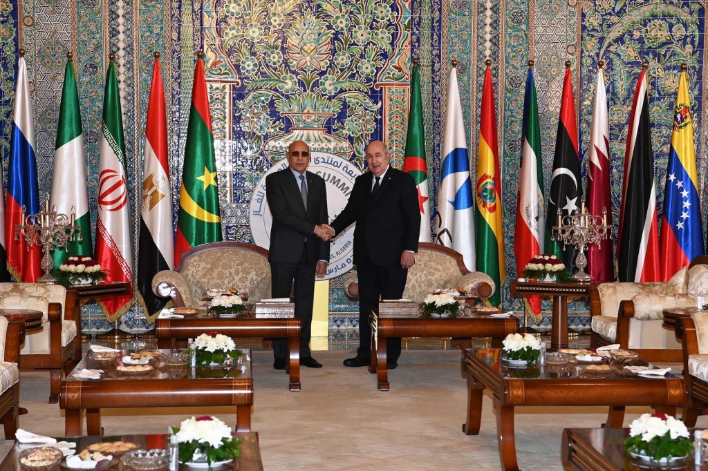 أجرى رئيس الجمهورية السيد عبد المجيد تبون مكالمة هاتفية مع أخيه السيد محمد ولد الشيخ الغزواني رئيس الجمهورية الإسلامية الموريتانية الشقيقة، جدّد له فيها تهانيه بانضمام بلاده إلى منتدى الدول المصدرة للغاز، كما أعرب له عن شكره للحضور الموريتاني المميز في أشغال القمة السابعة.