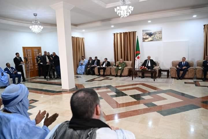 🔴 | كلمة رئيس الجمهورية السيد عبد المجيد تبون خلال لقاءه مع أعيان وفعاليات المجتمع المدني 📌 تبون : ولاية تندوف ستصبح قطباً حقيقياً في مجال الصناعة 📌 تبون :مشروعا غارا جبيلات، وخط السكة الحديدة بشار-تندوف-غارا جبيلات، مشاريع حيوية من شأنها القضاء على البطالة وتوفير مناصب شغل لشباب المنطقة 📌 تبون :الجزائر استعادت قوتها ومكانتها المحورية والريادية إقليميا ودوليا بفضل الجيش الوطني الشعبي وإخلاص الرجال 📌 تبون: وزير الصحة سيقوم بزيارة إلى ولاية تندوف لمعاينة المستشفى وتجهيزه في أقرب الأجال 📌 تبون: ألتزم بإدراج تخصص طب النساء وتخصص أمراض السرطان في هذا المستشفى 📌 تبون: ألتزم بمضاعفة أجر الأطباء الذين يشتغلون في الجنوب مع توفير المسكن لهم 📌 تبون: ألتزم بإنشاء محطة لتصفية المياه المستعملة في ولاية تندوف 🔴الرئيس تبون: سنعمل على تحويل المركز الجامعي بذات الولاية إلى جامعة 📌 تبون: الوزير الأول سيقوم بزيارة إلى ولاية تندوف قبل نهاية شهر ديسمبر من أجل تسجيل برنامج تكميلي للولاية