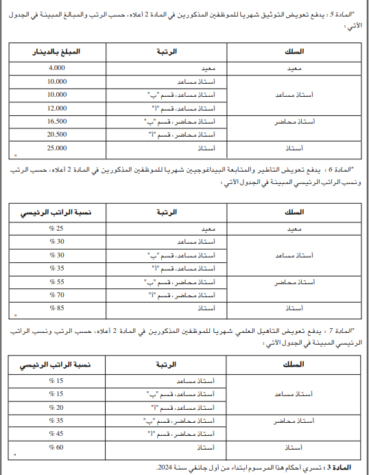 صدر في العدد رقم 18 من الجريدة الرسمية القانون الأساسي والنظام التعويضي للأستاذ الباحث، حيث سيتم تطبيق النظام التعويضي بأثر رجعي من 1 جانفي 2024.